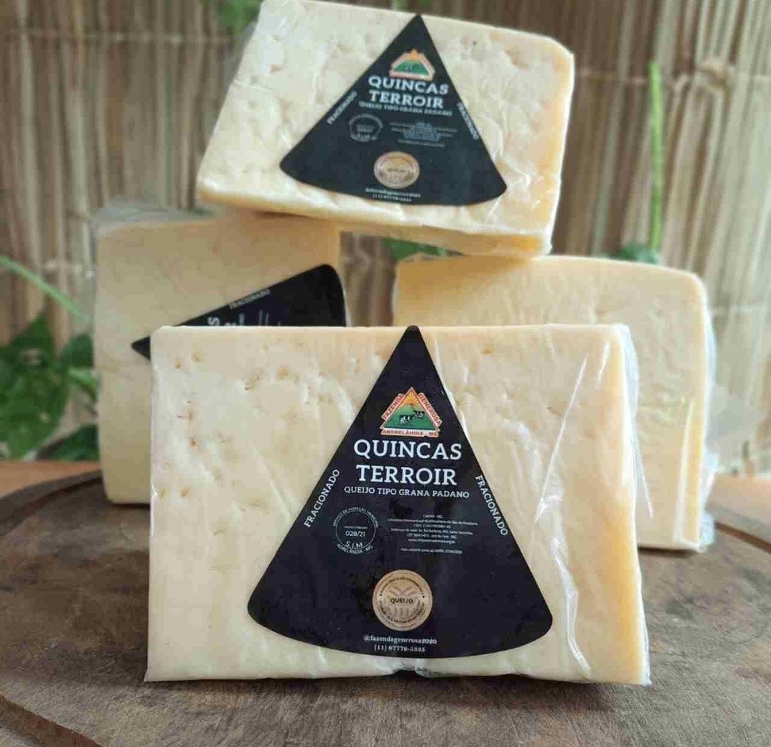 O Queijo Quincas Terroir tipo Grana Padano é um queijo artesanal produzido pela Fazenda Generosa, Ele segue a receita italiana centenária do Grana Padano, destacando-se por sua maturação prolongada, que varia entre 40 dias até 9 meses, sendo comum a maturação de 6 a 9 meses para obter sabor presente, marcante e uma textura firme e quebradiça com cristais.Este queijo utiliza leite cru e é um produto de terroir, ou seja, influencia dos aspectos ambientais do local de produção, conferindo uma identidade única e sabor especial ao queijo. É premiado em concursos internacionais de queijos, como o Mundial do Queijo do Brasil e o World Cheese Award 2022.O Queijo Quincas Terroir é ideal para harmonizar com vinhos ou para complementar receitas, trazendo uma experiência gourmet autêntica e de alta qualidade, sendo também livre de lactose após o processo de longa maturação.